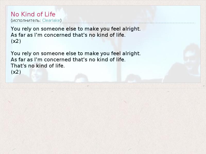А как ты думаешь, о чем песня "No Kind of Life" ?