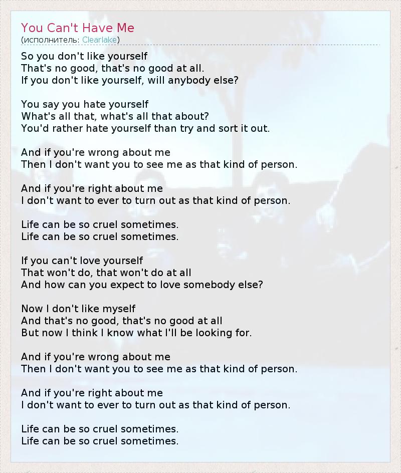 А как ты думаешь, о чем песня "You Can't Have Me" ?