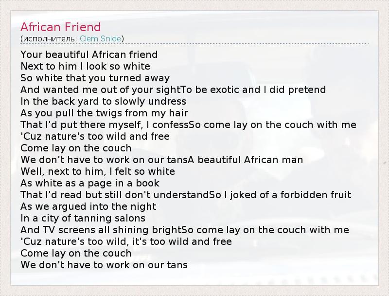 А как ты думаешь, о чем песня "African Friend" ?