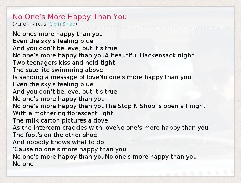 А как ты думаешь, о чем песня "No One’s More Happy Than You" ?
