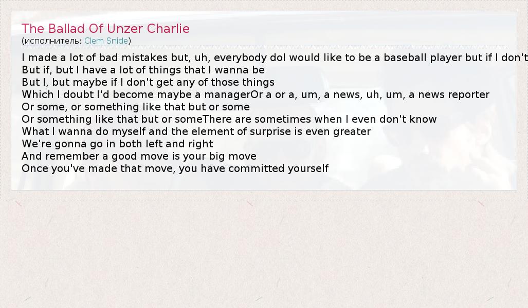 А как ты думаешь, о чем песня "The Ballad Of Unzer Charlie" ?