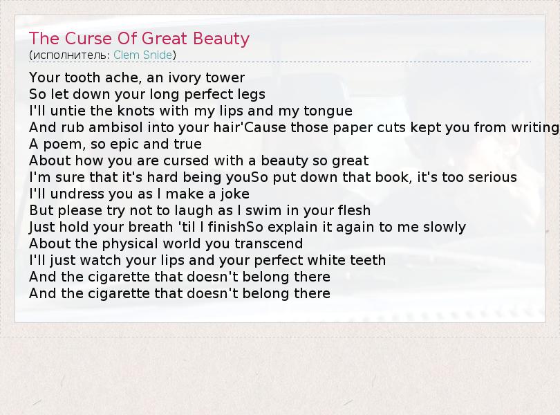 А как ты думаешь, о чем песня "The Curse Of Great Beauty" ?