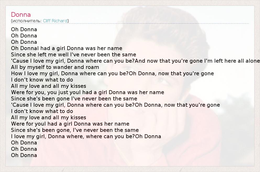 How I love my girl, Donna where can you be?Oh Donna, now that you're gone