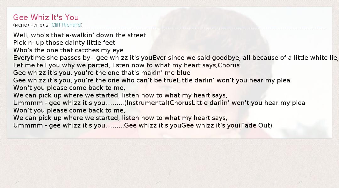 А как ты думаешь, о чем песня "Gee Whiz It's You" ?