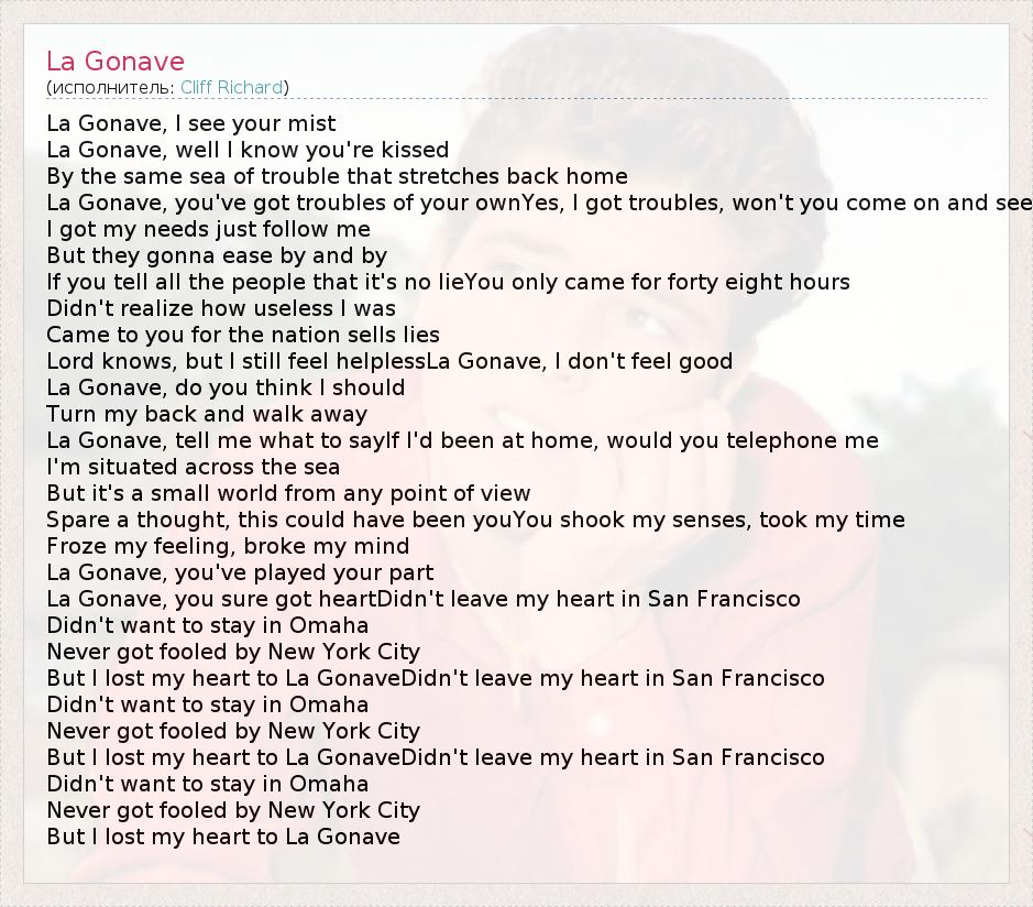 But I lost my heart to La GonaveDidn't leave my heart in San Francisco