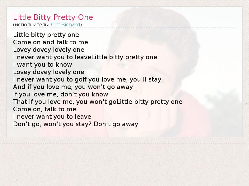 А как ты думаешь, о чем песня "Little Bitty Pretty One" ?