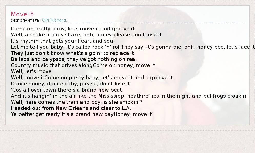 Это интересно:Музыкальную карьеру исполнителя рок-н-роллов Ричард начал в 1957 году - одержимость песнями Пресли подвигла Клиффа Ричарда присоединиться к скиффл-группе, из которой через несколько месяцев он сформировал коллектив под названием The Drifters (Клифф Ричард - вокал, гитара, Кен Пэйн - гитара, Терри Смарт - ударные). Группа выступала в барах клубах Хертфордшира, а затем ее пригласили в известную... продолжение