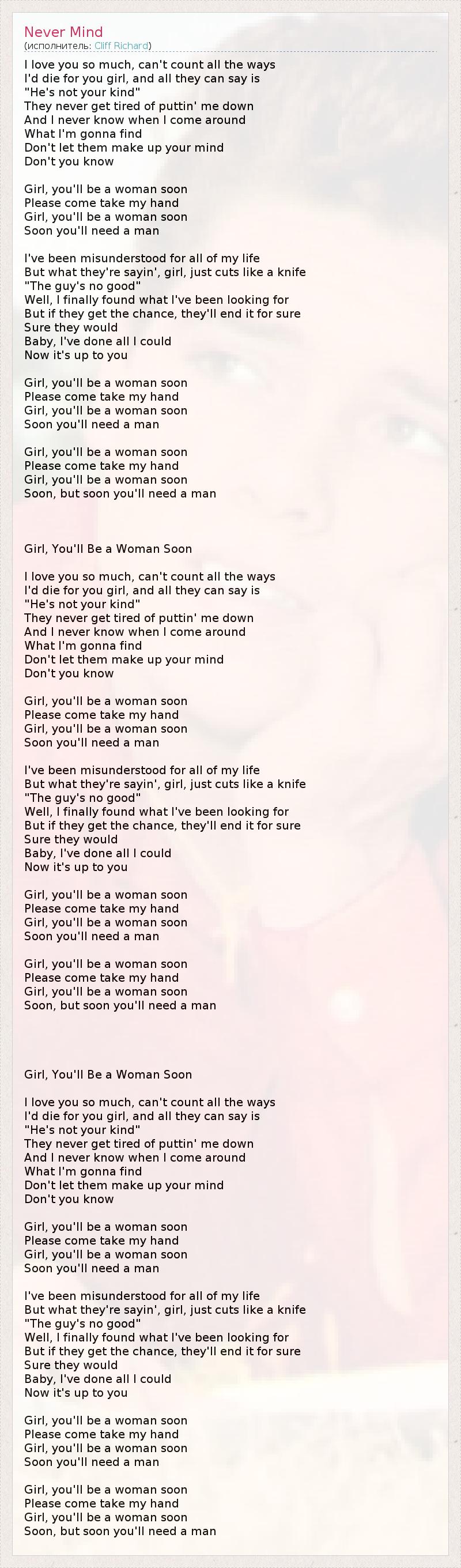 Эй, ты почти женщина... (перевод Волкот из Таганрога)