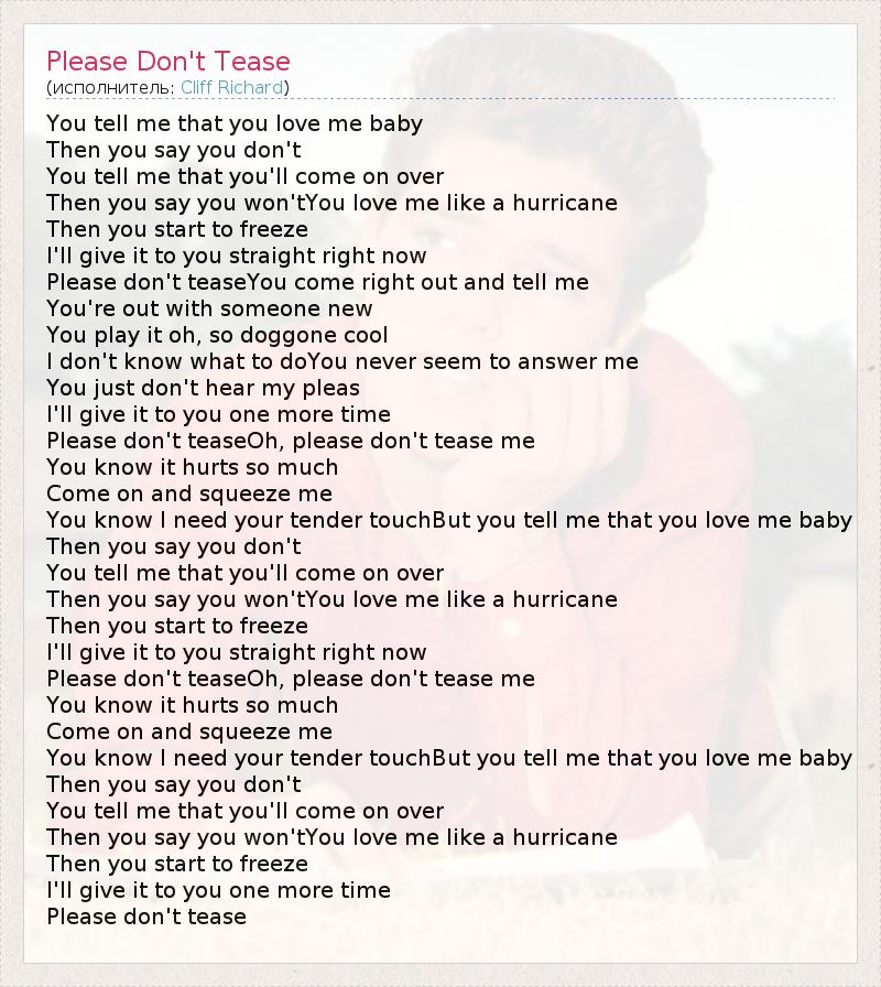 А как ты думаешь, о чем песня "Please Don't Tease" ?