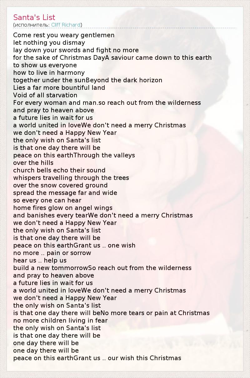 А как ты думаешь, о чем песня "Santa's List" ?