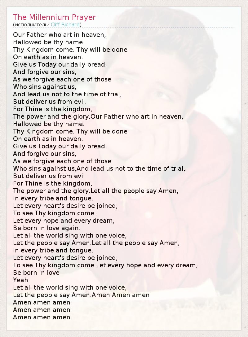 А как ты думаешь, о чем песня "The Millennium Prayer" ?