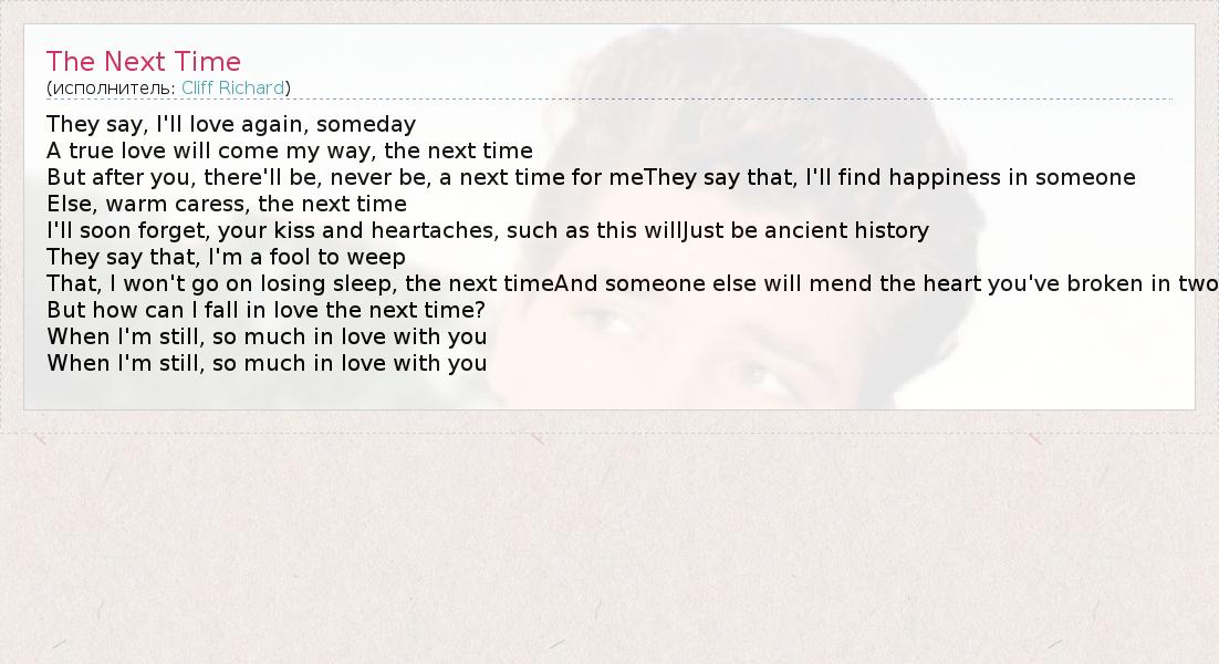 Это интересно:Музыкальную карьеру исполнителя рок-н-роллов Ричард начал в 1957 году - одержимость песнями Пресли подвигла Клиффа Ричарда присоединиться к скиффл-группе, из которой через несколько месяцев он сформировал коллектив под названием The Drifters (Клифф Ричард - вокал, гитара, Кен Пэйн - гитара, Терри Смарт - ударные). Группа выступала в барах клубах Хертфордшира, а затем ее пригласили в известную... продолжение