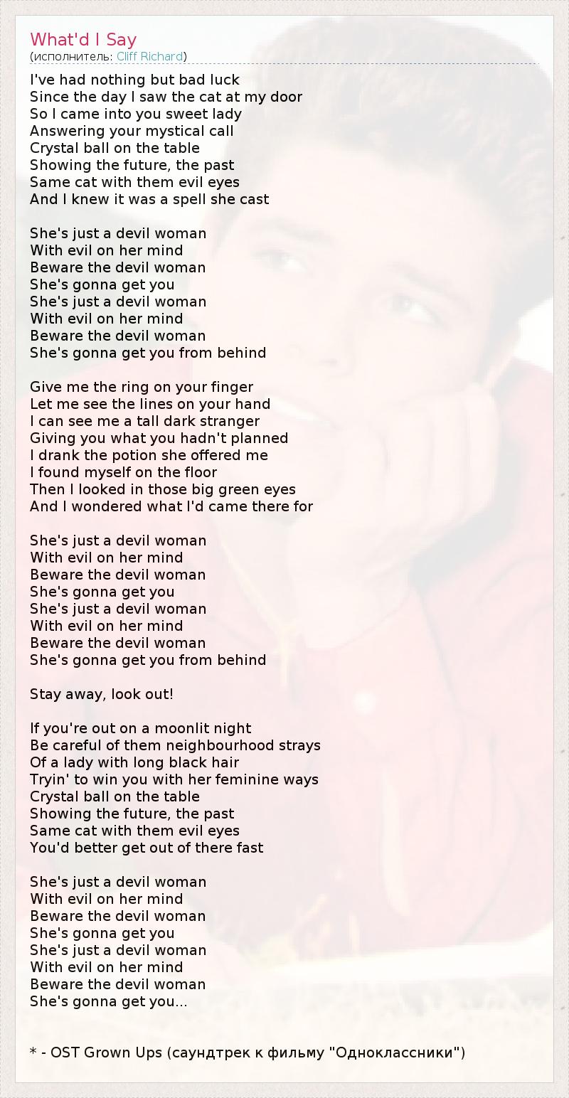 А как ты думаешь, о чем песня "What'd I Say" ?