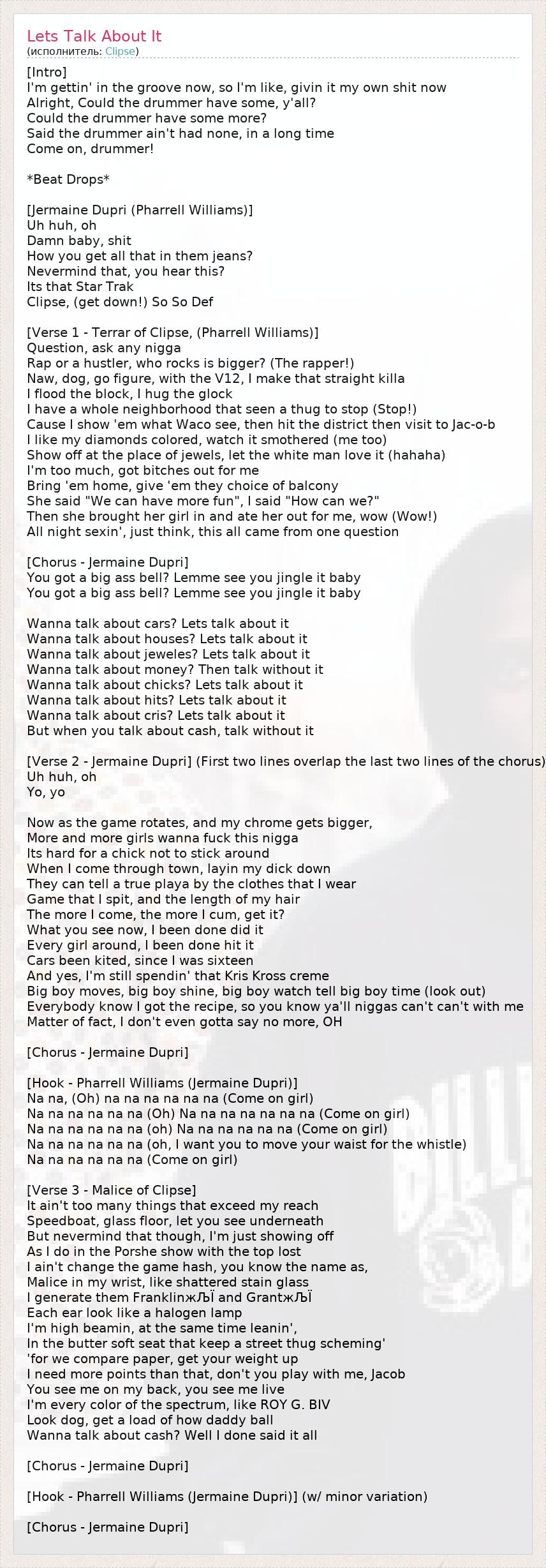 А как ты думаешь, о чем песня "Lets Talk About It" ?