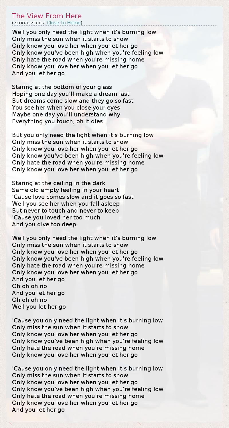 Но тебе нужен свет лишь тогда, когда он гаснет.