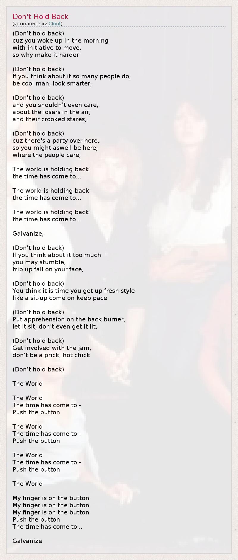 А как ты думаешь, о чем песня "Don't Hold Back" ?