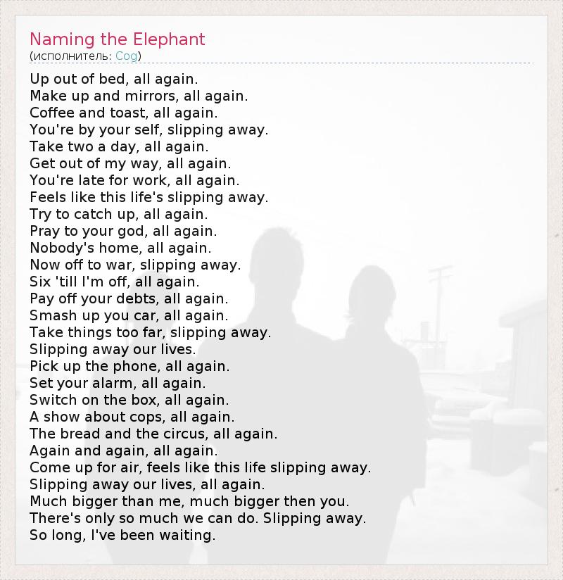А как ты думаешь, о чем песня "Naming the Elephant" ?