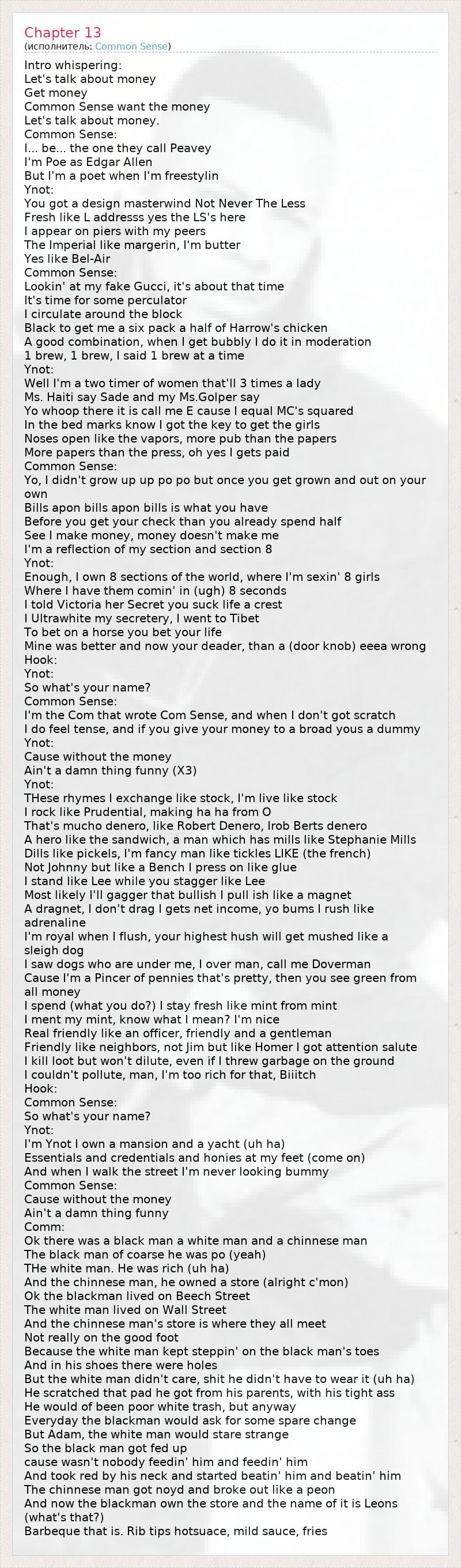 А как ты думаешь, о чем песня "Chapter 13" ?