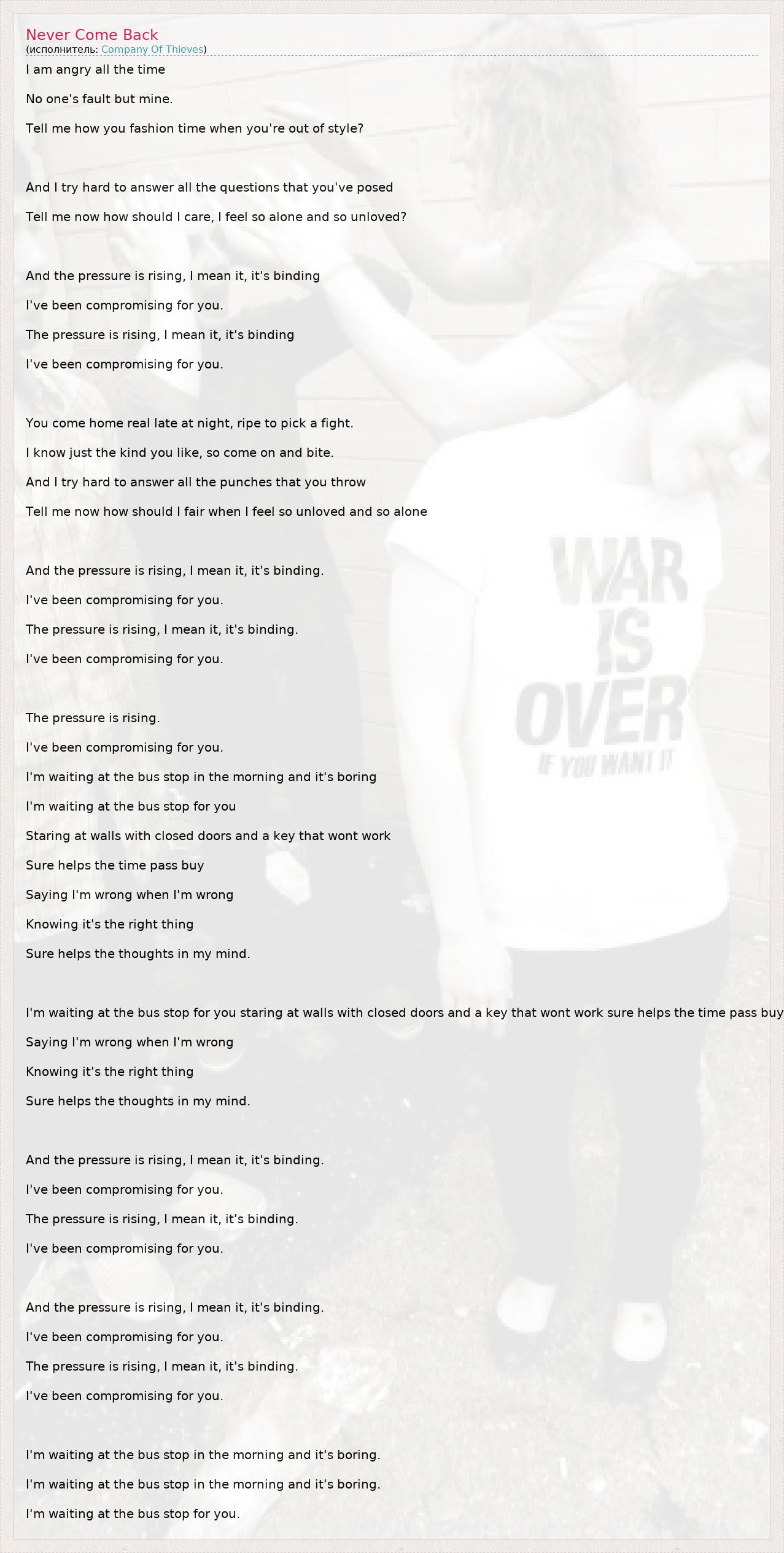 А как ты думаешь, о чем песня "Never Come Back" ?