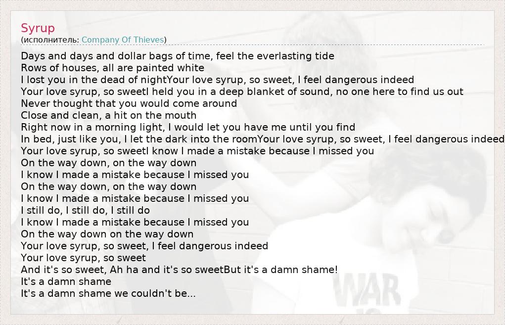 Your love syrup, so sweetI know I made a mistake because I missed you