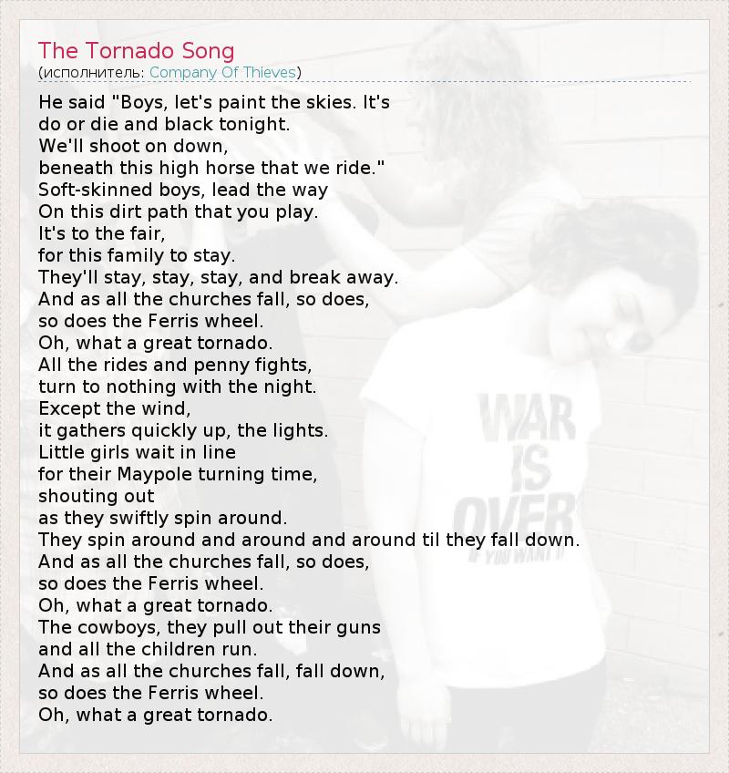 А как ты думаешь, о чем песня "The Tornado Song" ?