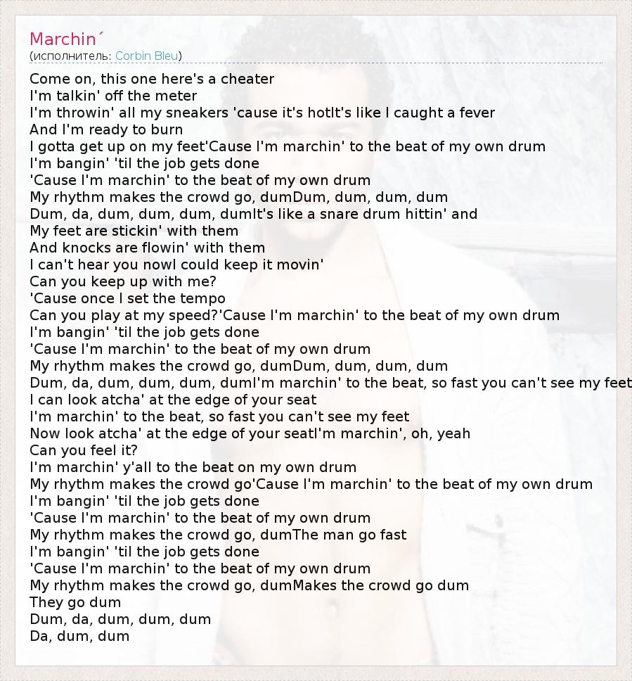 Dum, da, dum, dum, dum, dumI'm marchin' to the beat, so fast you can't see my feet