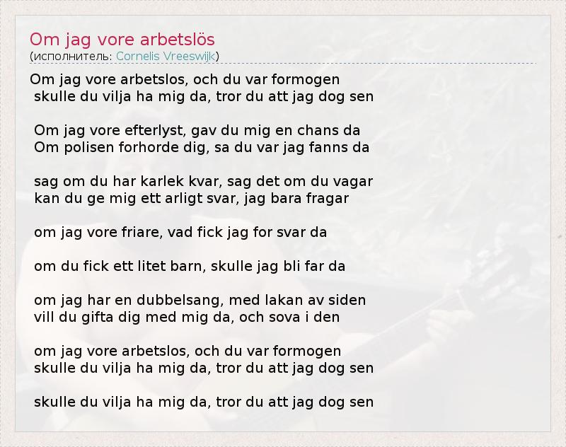 А как ты думаешь, о чем песня "Om jag vore arbetslös" ?