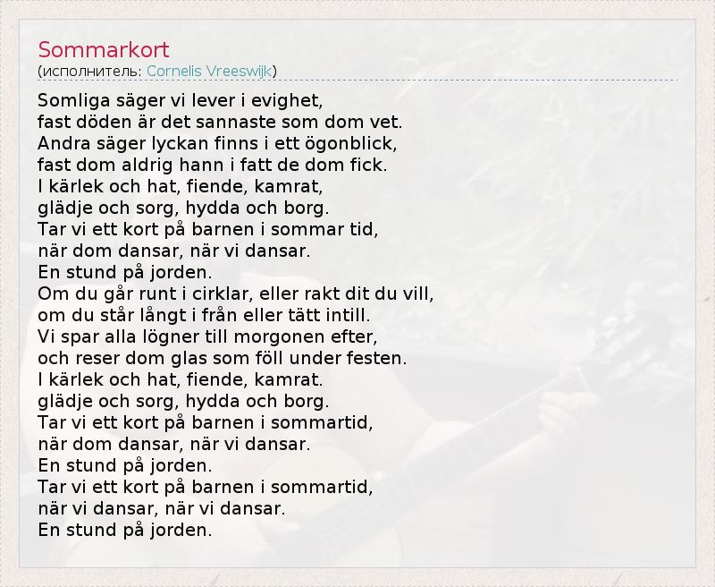 А как ты думаешь, о чем песня "Sommarkort" ?
