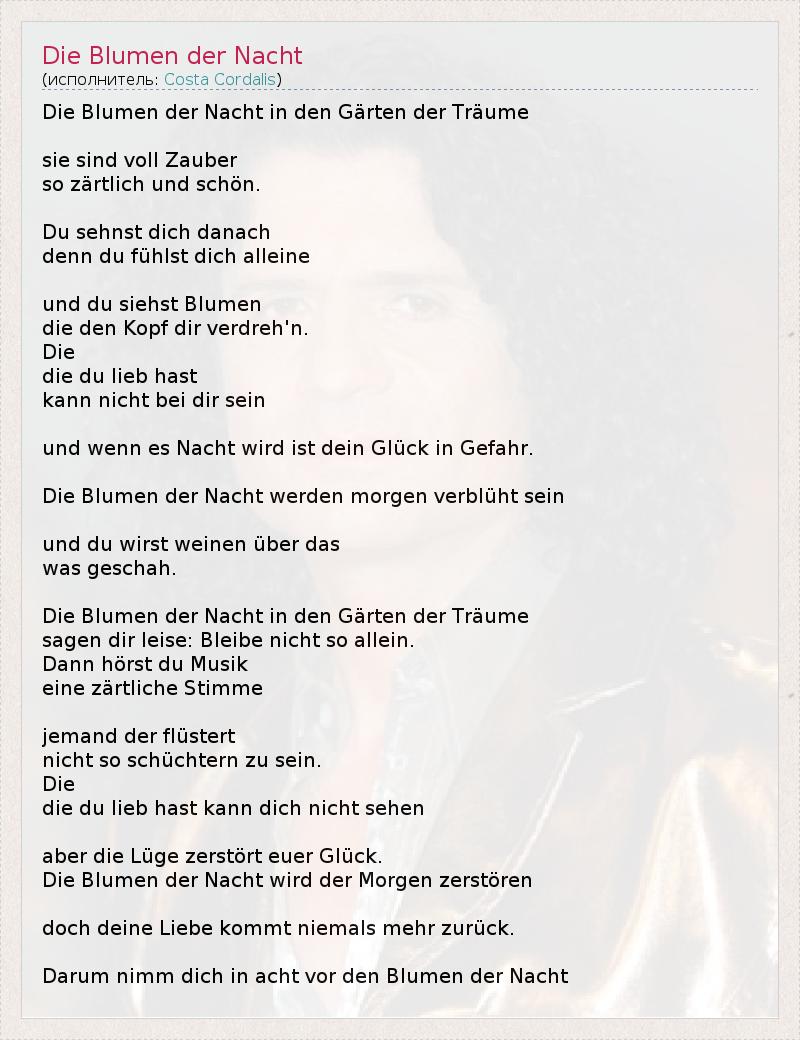 А как ты думаешь, о чем песня "Die Blumen der Nacht" ?