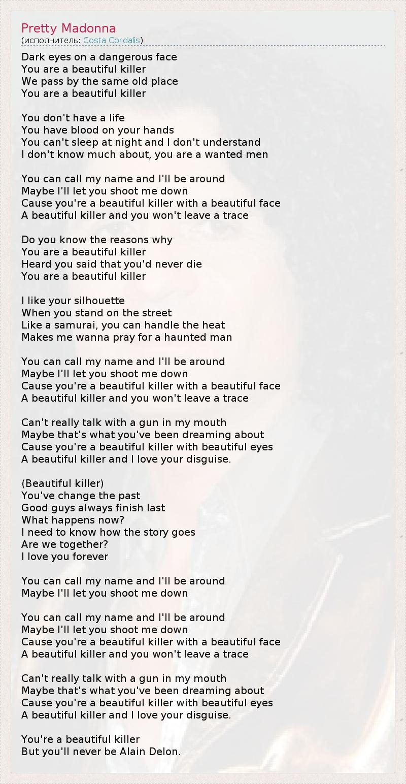 Cause you're a beautiful killer with a beautiful face