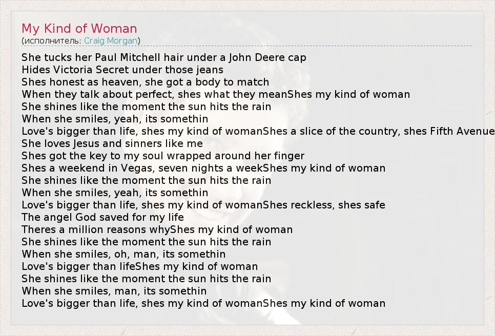 А как ты думаешь, о чем песня "My Kind of Woman" ?