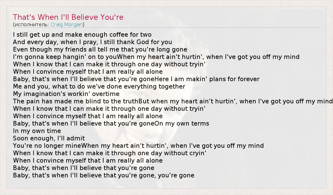 ГлавнаяИсполнителиCraig MorganThat's When I'll Believe You're