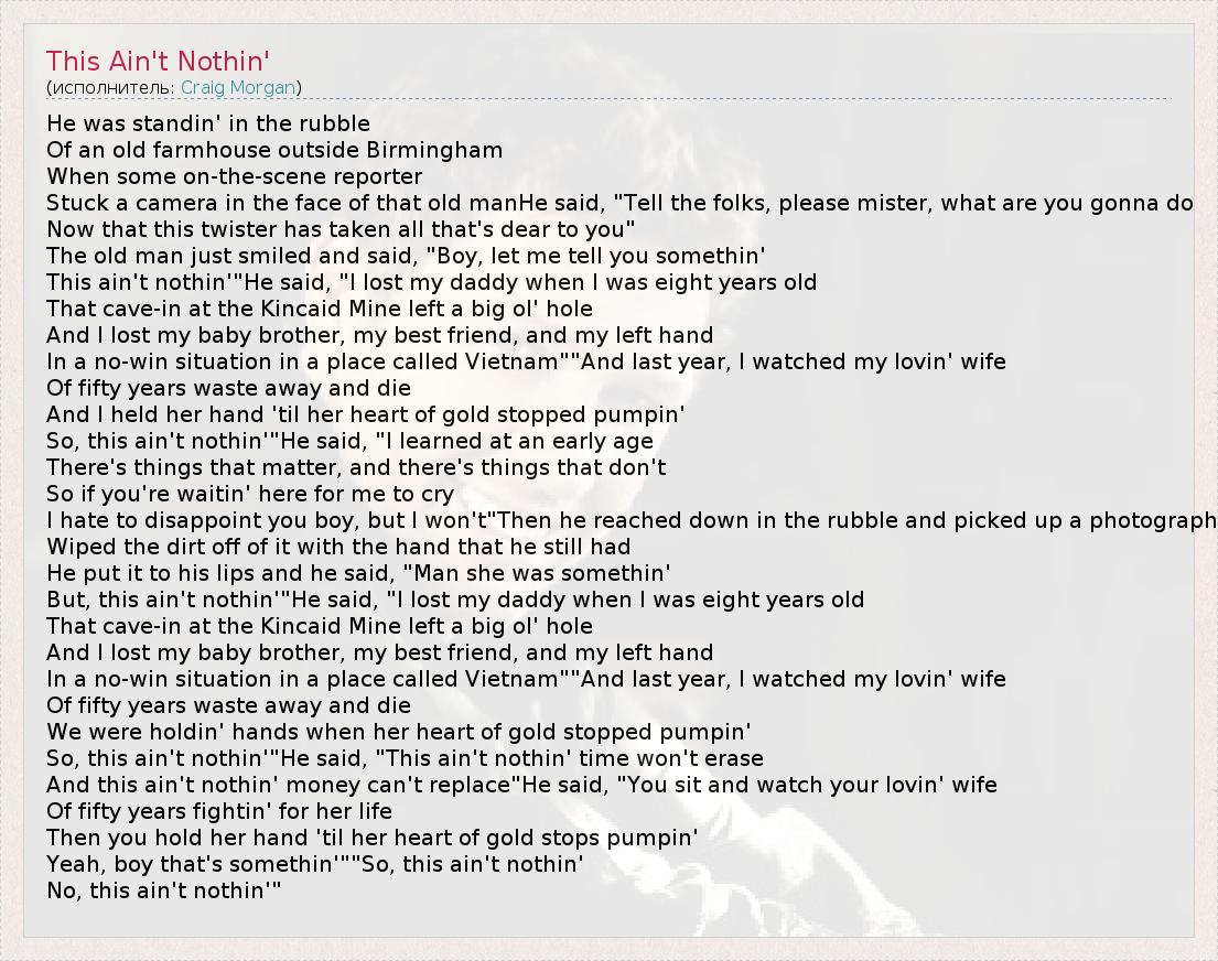 А как ты думаешь, о чем песня "This Ain't Nothin'" ?