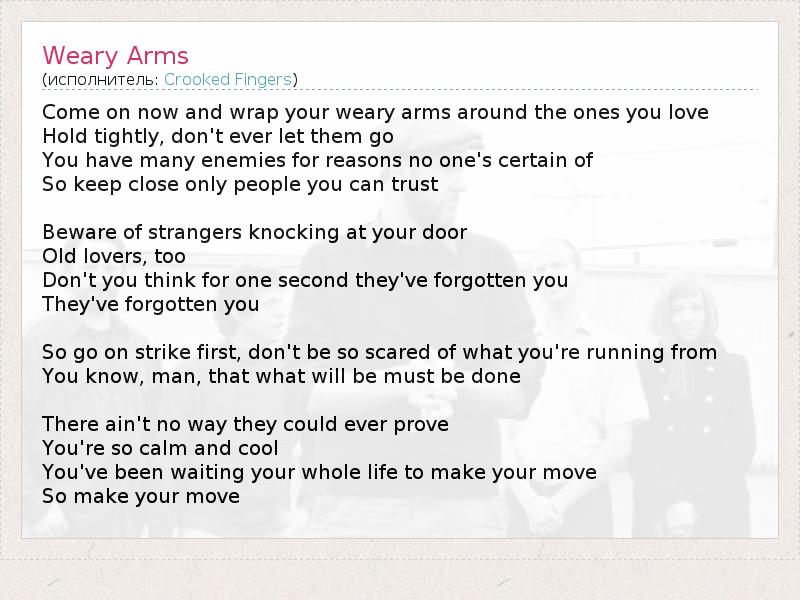А как ты думаешь, о чем песня "Weary Arms" ?