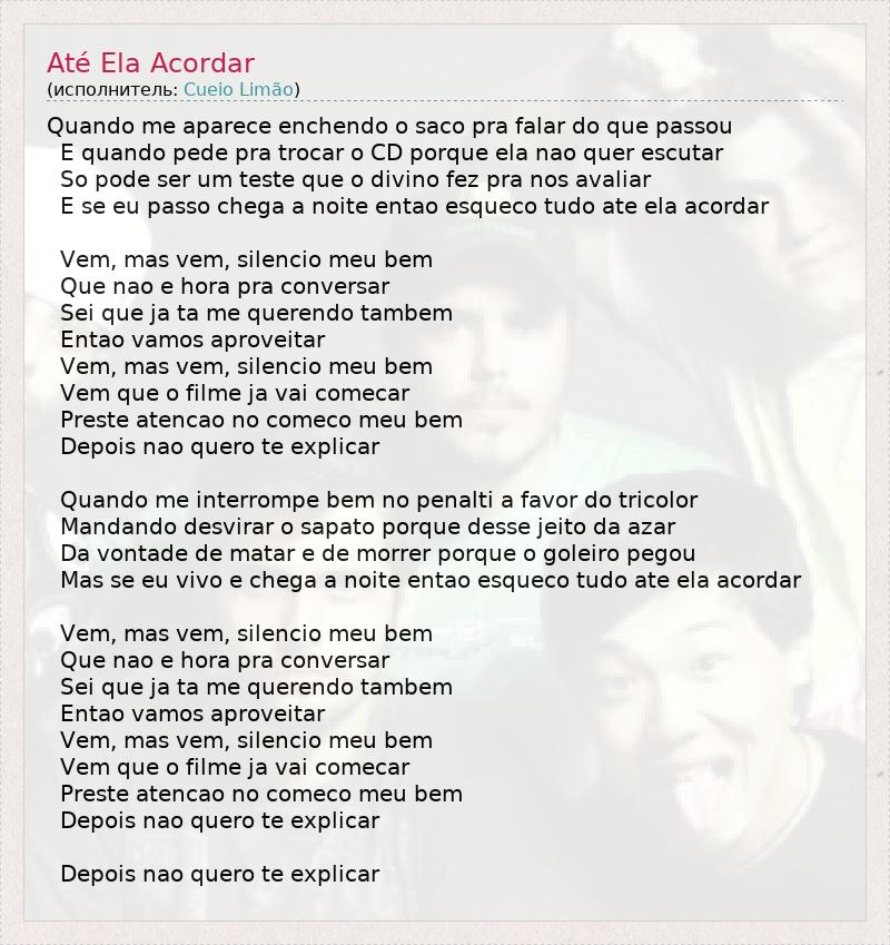 А как ты думаешь, о чем песня "Até Ela Acordar" ?