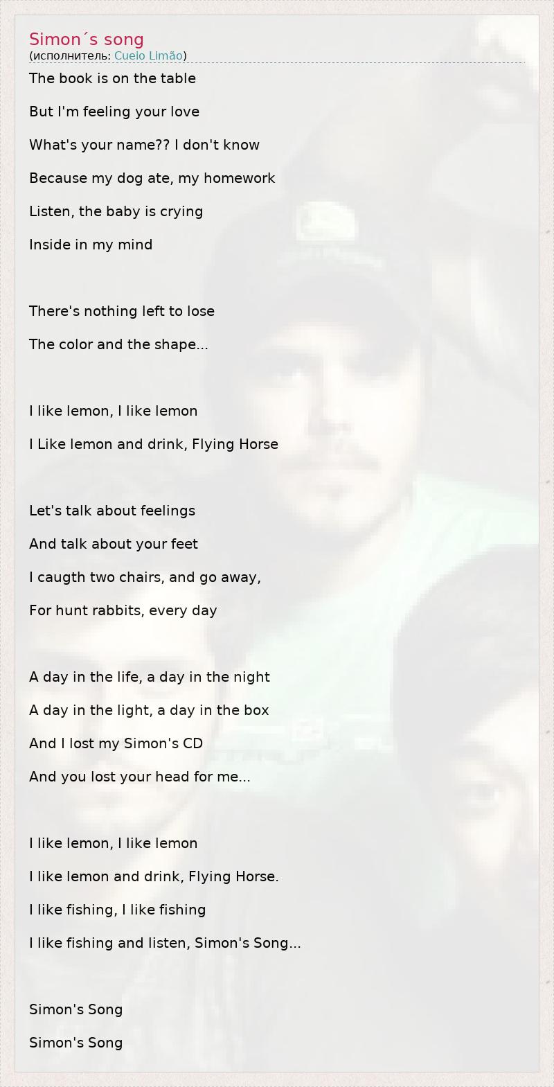 А как ты думаешь, о чем песня "Simon´s song" ?
