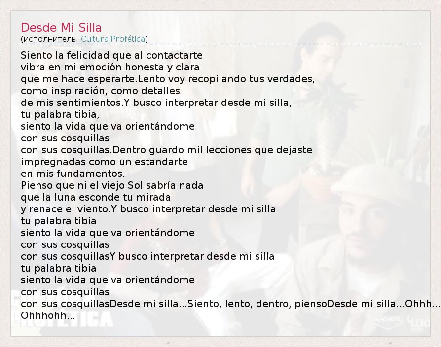 А как ты думаешь, о чем песня "Desde Mi Silla" ?