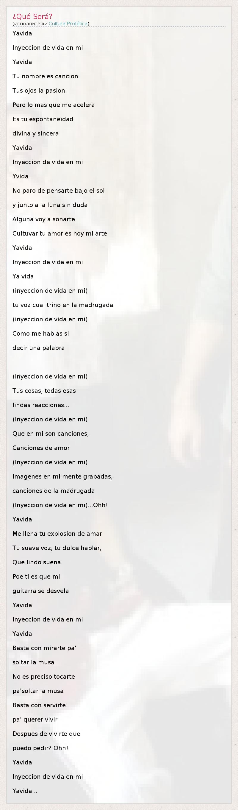 А как ты думаешь, о чем песня "¿Qué Será?" ?