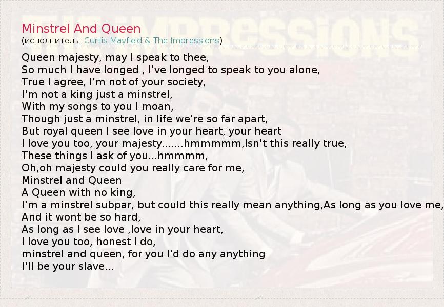 А как ты думаешь, о чем песня "Minstrel And Queen" ?