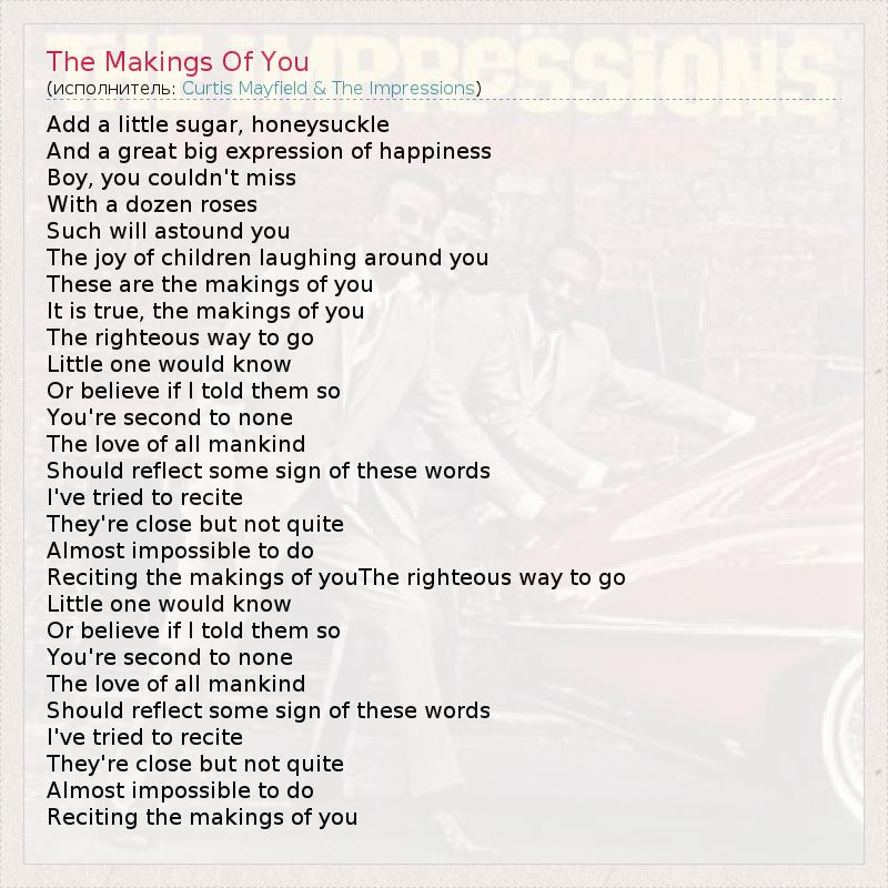 А как ты думаешь, о чем песня "The Makings Of You" ?