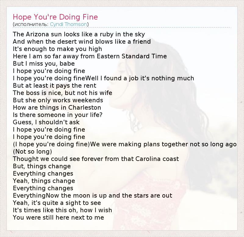 А как ты думаешь, о чем песня "Hope You're Doing Fine" ?
