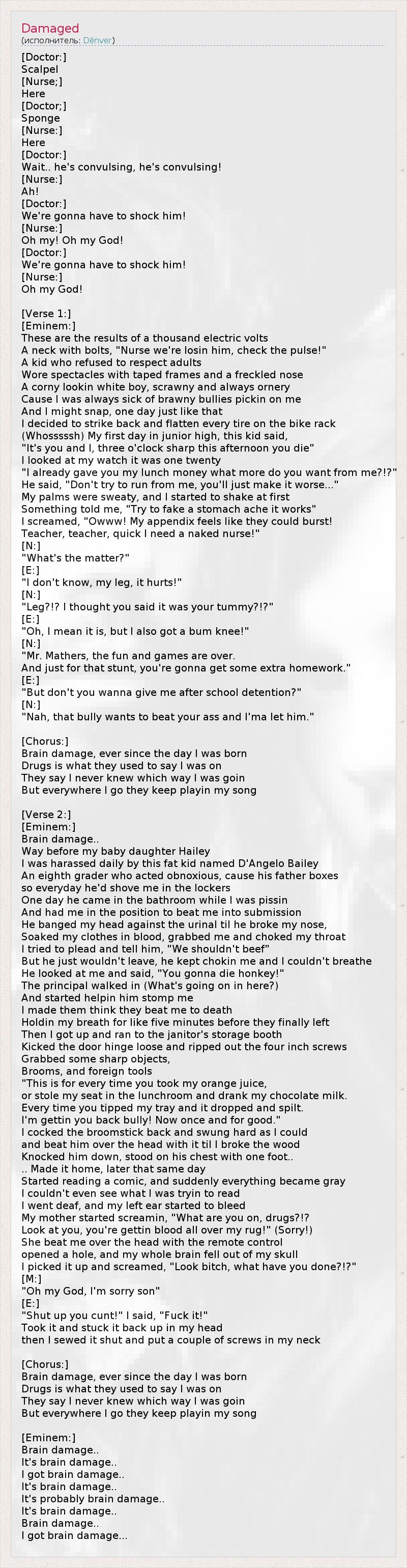 Раскроила мне череп, и весь мозг вывалился на пол.