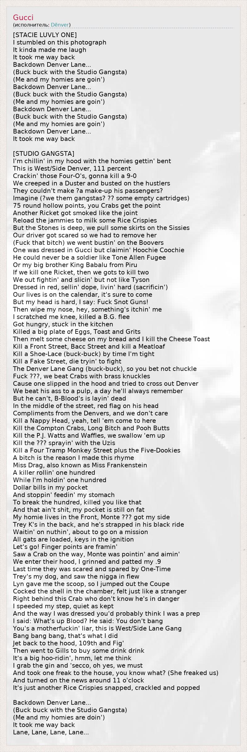 One was dressed in Gucci but claimin' Hoochie Coochie