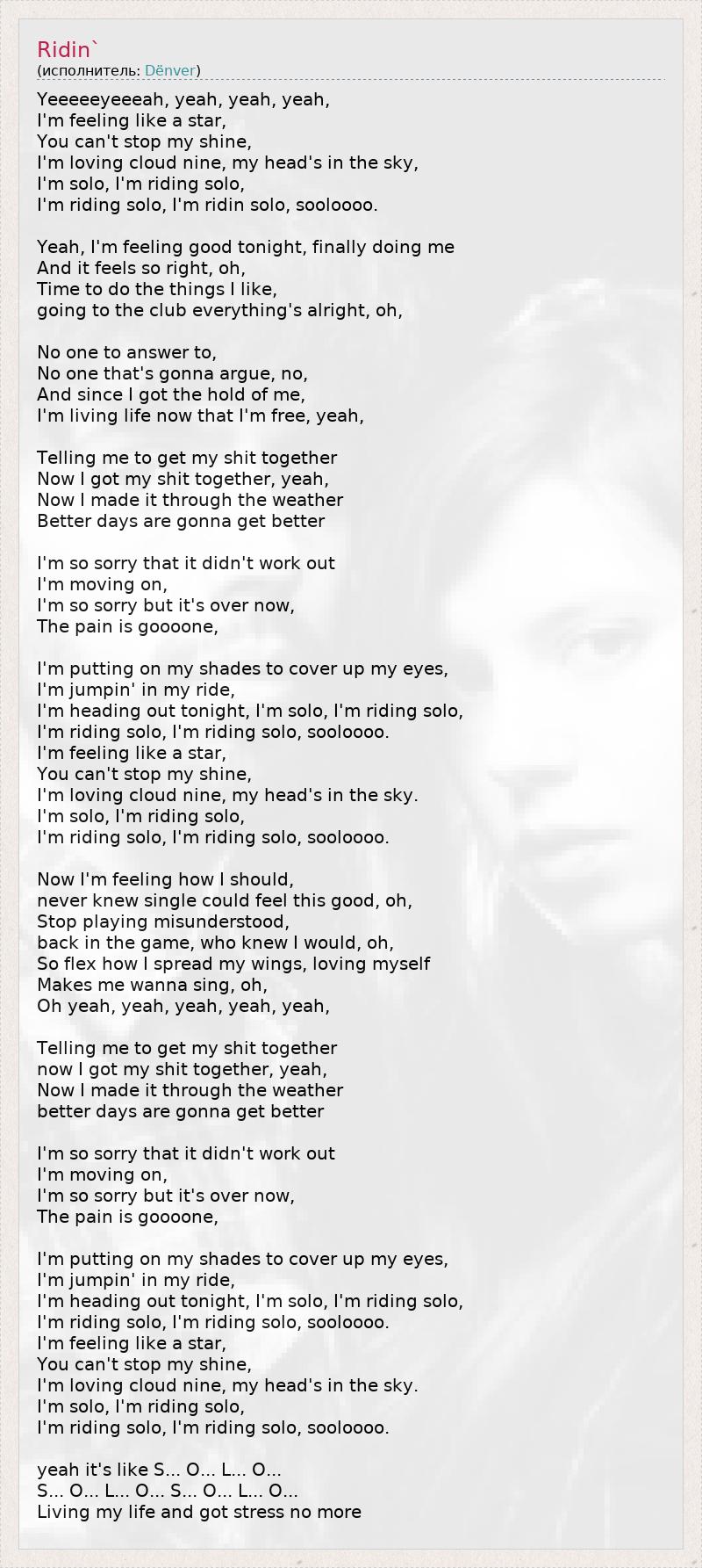 I'm heading out tonight, I'm solo, I'm riding solo,