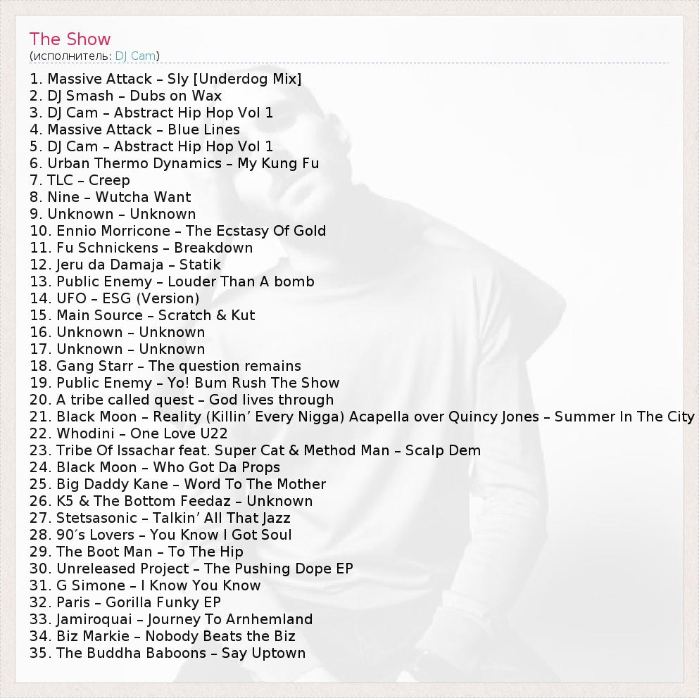 Это интересно:Лорент Домэйл, более известный как DJ Cam, родился в Бруклине в 1973 году, когда хип-хоп ди-джеинг только начинал зарождаться. Первый контакт будущего ди-джея с миром музыки состоялся в возрасте восьми лет, когда он начал заниматься игрой на фортепиано. Мистер Домэйл, Отец Лорента, был владельцем джазового ресторанчика и очень почитал джаз, и прививал молодому сыну любовь к синкопе и бибопу.... продолжение