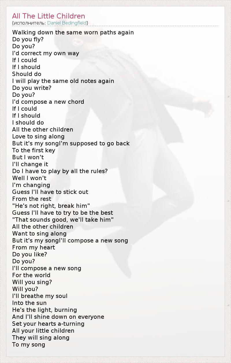 А как ты думаешь, о чем песня "All The Little Children" ?