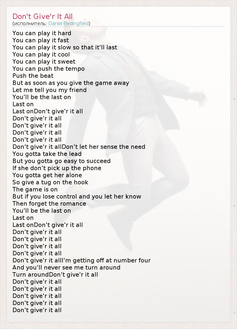А как ты думаешь, о чем песня "Don't Give'r It All" ?