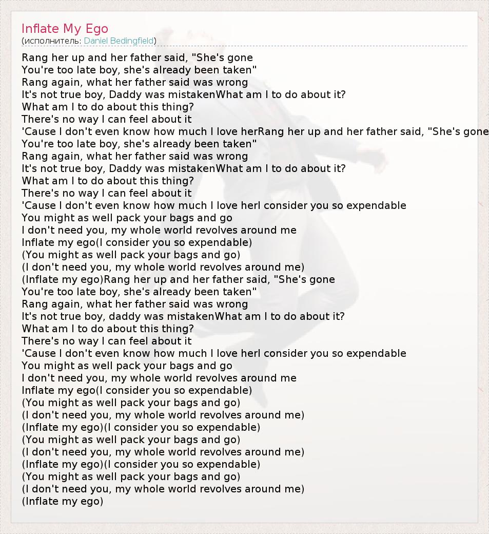 А как ты думаешь, о чем песня "Inflate My Ego" ?