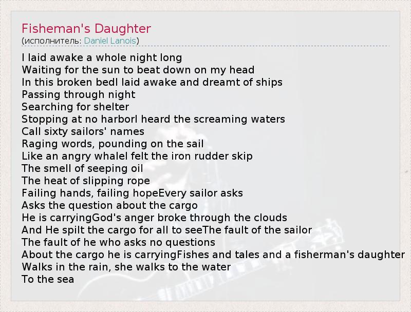 А как ты думаешь, о чем песня "Fisheman's Daughter" ?