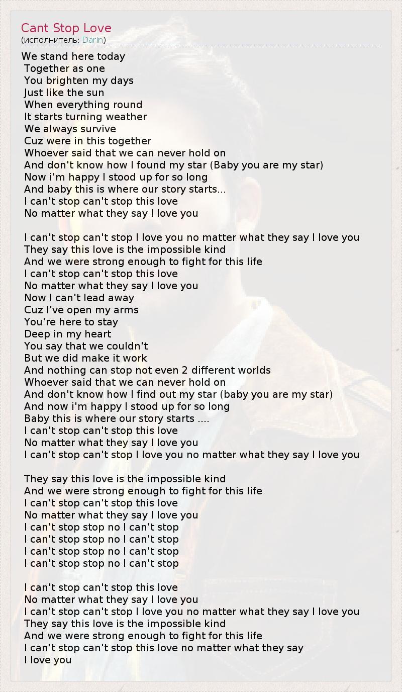 I can't stop can't stop I love you no matter what they say I love you
